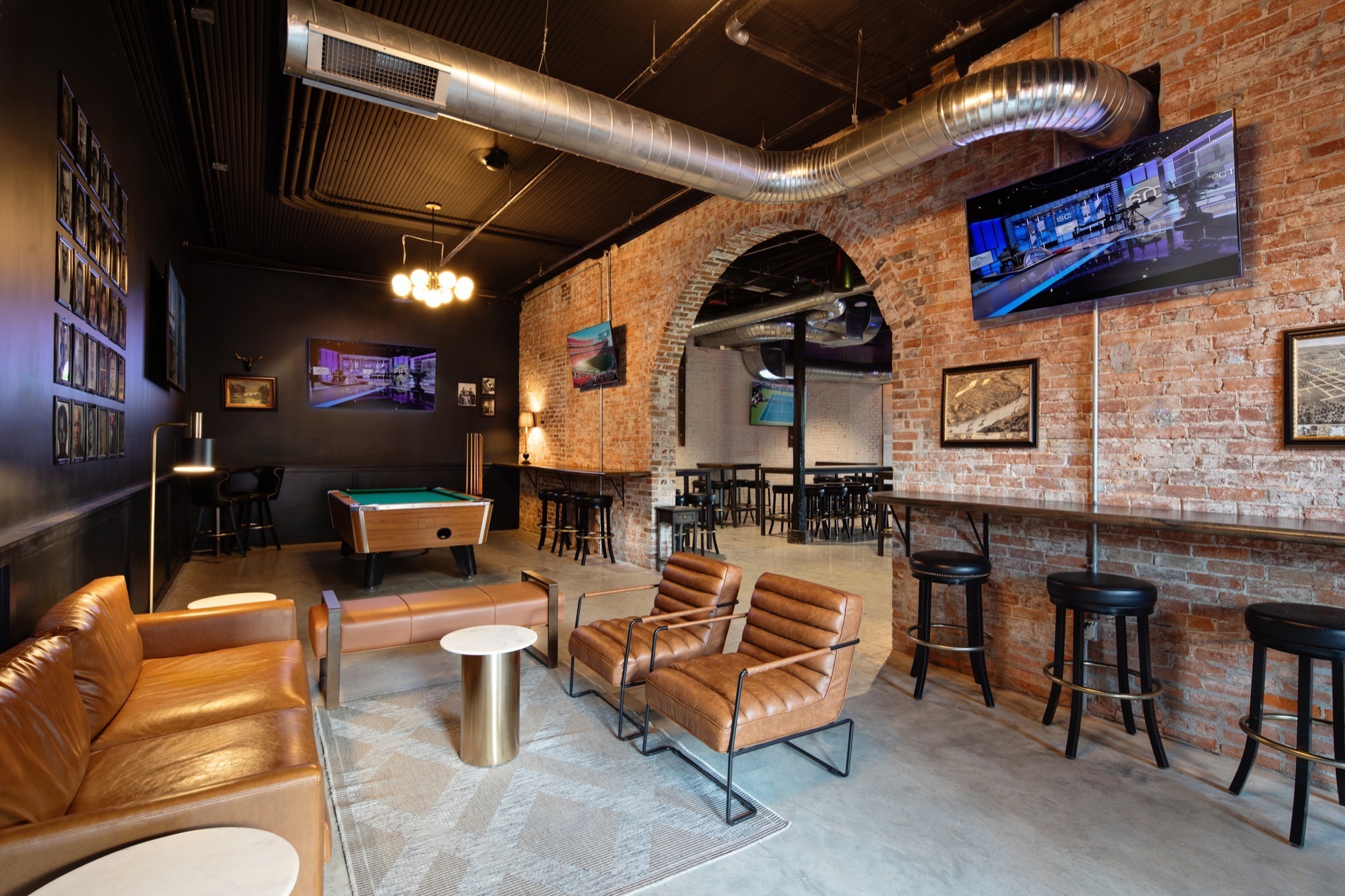 iTap’s design features a horseshoe shaped bar, the old bank vault as the keg cooler, a two-level patio, parlor games and 18 TVs, where they feature 40 taps of the most sought-after beers, signature draft cocktails and one of the metro’s biggest bourbon selections. iTap subleases to Johnny Jo’s New York style pizza and sandwiches under the old bank building roof, which was part of the design build elements of the project.