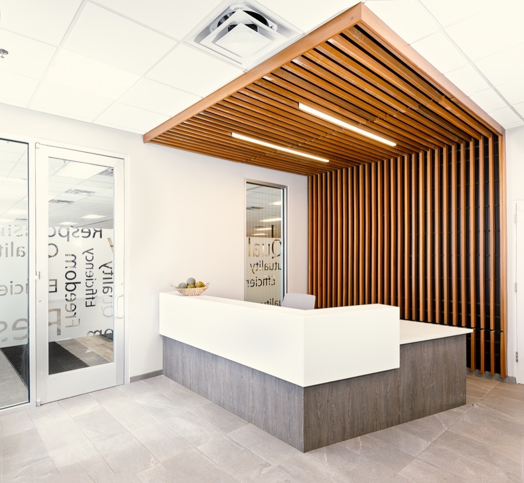 The client asked Collins | Webb Architecture to modernize their existing office support spaces that are a part of the large manufacturing facility in Kansas City, Missouri. The Collins | Webb team worked closely with the client and General contractor to work within the budget and accommodate the need to have high durability finishes for this manufacture space. With a pet friendly environment along with production workers routinely coming into the space, the finishes had to be long lasting while giving the sense of a class A office space. Key project elements included a new reception area, upgraded conference rooms, training room, new locker/toilet rooms and an upgraded break area for both production and office staff.