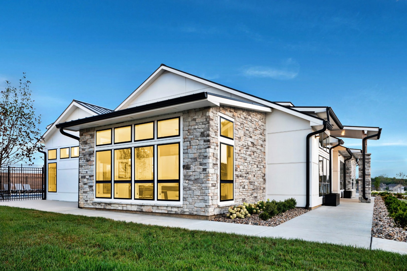 Collins | Webb Architecture was commissioned to design a new clubhouse for a new townhome development. In conjunction with the 21-acre site and 204 multi-family unit, The Venue Clubhouse houses a large great room that overlooks the pool area. The space also includes a fitness center, gaming area and modern offices for the property management and team.