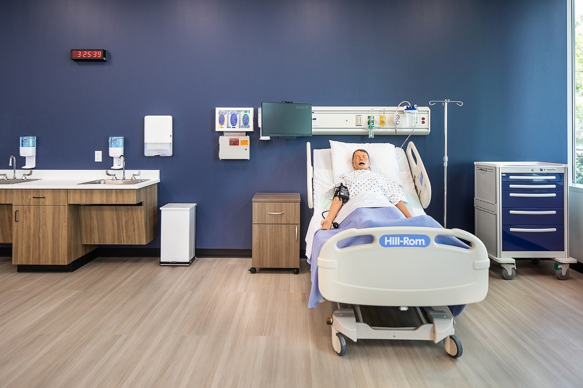 The location also includes two skills labs, five student-focused debriefing rooms, and a large multipurpose room for training and teaching.